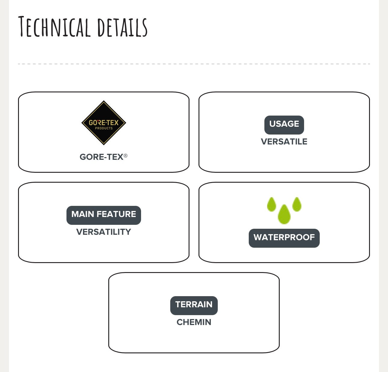 يوفر شعورًا بالرشاقة وانخفاضًا في الارتفاع (4 مم) مما يجعله مثاليًا للتضاريس الوعرة، وبالتالي خيارًا ممتازًا للمشي لمسافات طويلة، والجري على الطرق الوعرة، والتسلق.